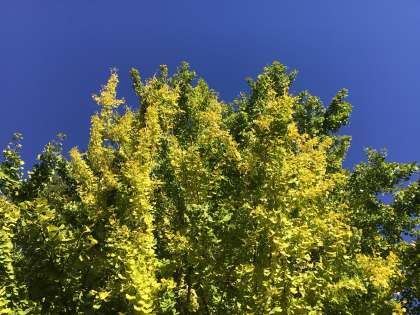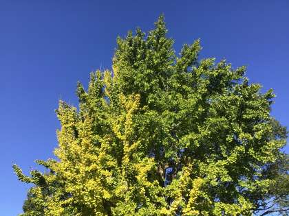 学校のイチョウの木です。今年は、夏の猛暑の影響でしょうか。イチョウの葉の色づきが例年よりも遅れているようです。しかしながら、このところの朝晩の冷え込みによって、秋らしくなってきました。体調を崩しやすい時期です。来週は、テストも控えています。体調管理に気をつけてください。