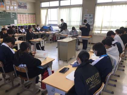 3年生の社会科の授業の様です。今日は、弁護士の方を招き、模擬裁判を通して、裁判の役割について学んでいました。裁判員制度がスタートして約15年が過ぎました。国民にとって、裁判が身近なものとなりつつあります。今回は、架空の刑事事件に関する裁判を行い、有罪とすべきか無罪とすべきかを考えていました。