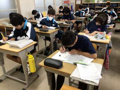 1,2年生は明日から中間テストとなります。明日からのテストに向けて復習をしていました。2年生の様子です。