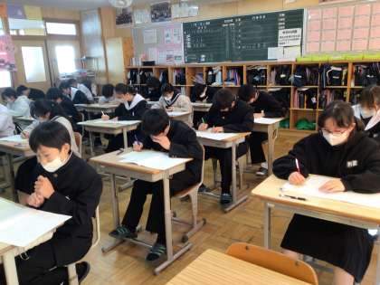 中間テストが今日で終わります。最後の教科のテストに取り組んでいました。1年生の様子です。