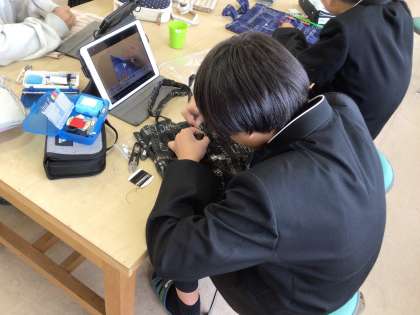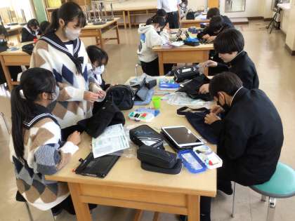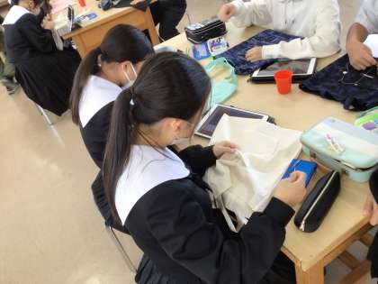 1年生の家庭科の授業の様子です。エコバッグを製作していました。針を使って慎重に縫っていました。