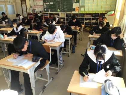 3年生の授業の様子です。来週実施される学習診断テストに向けて、復習問題に取り組んでいました。