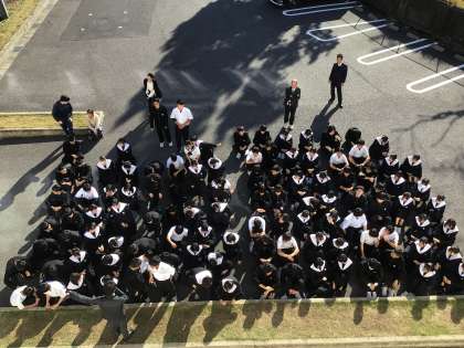 12月となりました。今年も残すところあと1か月となりました。3年生は学年、学級で集合写真を撮影していました。