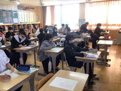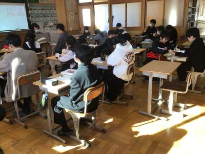 1年生の数学科の授業の様子です。比例反比例について学習していました。問題を解いたあと、仲間同士で確かめていました。