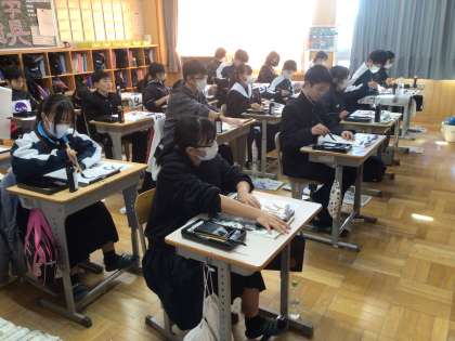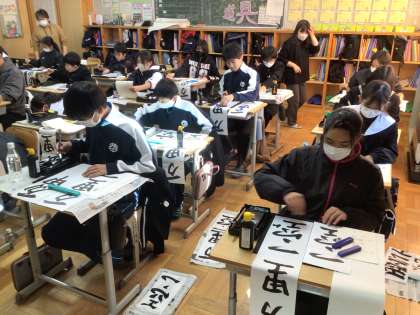 1年生の国語科の授業の様子です。今日は、書写に取り組んでいました。ボランティアの方を講師に招き、教えていただきました。