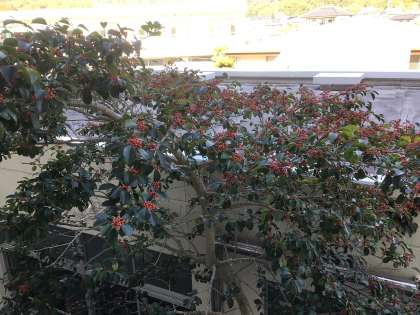 3年生の廊下から猿投山方面を眺めると、真っ赤な実が目に飛び込んできます。南天の実です。本校の多目的室前の小さな庭園に植えられています。南天は難を転じる「難転」という意味もあるそうです。3年生は、夢の実現に向けて、今は大変な時かもしれませんが、乗り越えた先には、笑顔が待っています。体調を整え、地道な取り組みを続けましょう。また、教室には、シクラメンの花が飾られていました。