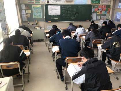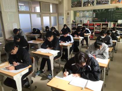 3年生は学習診断テストを実施しています。今日は3回目のテストとなります。今までの学習の成果を発揮しようと集中して取り組んでいます。4時間目のテストの様子です。