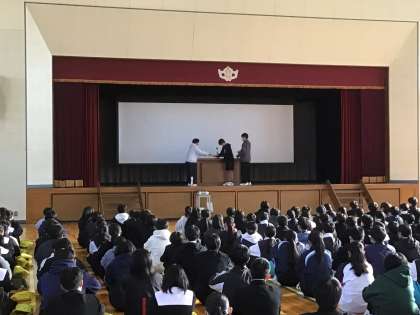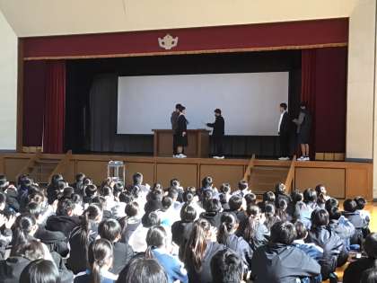 先週、生徒会によるあいさつキャンペーンと猿中クイズについて、結果発表と表彰を行いました。