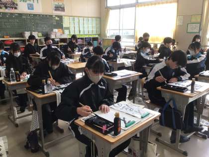 3年生の書き初めの様子です。「不屈の精神」と書いていました。