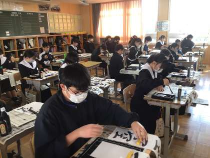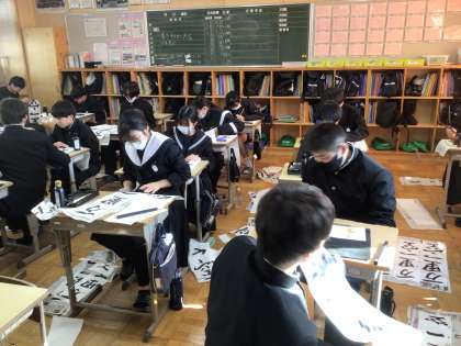 1年生の書き初めの様子です。「万里一空」と書いていました。