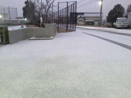 今朝は雪が降っています。うっすらと積もっている所もあります。交通安全に十分気をつけて登校してください。午前6時40分現在の学校周辺の様子です。