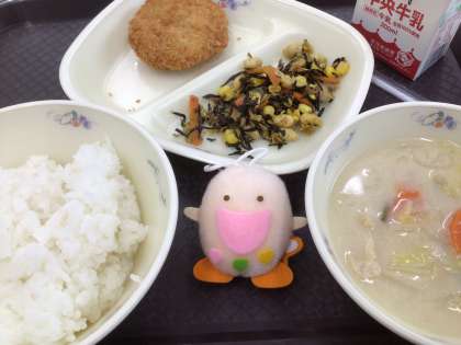 今日の給食の献立は、たべまるのおすすめ献立です。「ひじきと大豆のサラダ(カレー風味)」です。クックパッド公式キッチンにて、レシピを見ることができます。