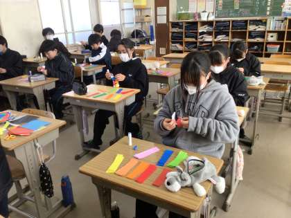 卒業生を送る会の準備を進めています。1,2年生が協力して活動しています。