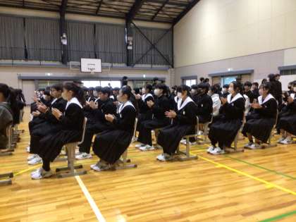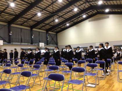 卒業証書授与式の動きの確認をしていました。短時間でしたが、全校生徒が集中して取り組んでいました。緊張感がありました。