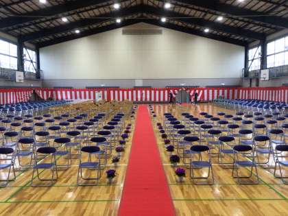 明日の会場の準備が整いました。明日の朝、1年生のみんなが椅子を入れたら完成となります。2年生が心を込めて会場を整えていました。3年生からのバトンを受け、猿投中学校を支える姿が準備中に見られました。2年生のみなさん、ありがとうございました。