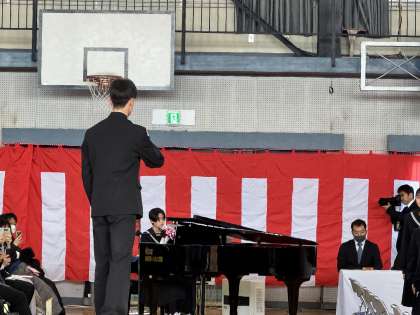 卒業生からの別れの言葉が話されました。別れの歌として、卒業生が作詞、作曲をした『いつまでも ともに』を歌いました。