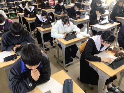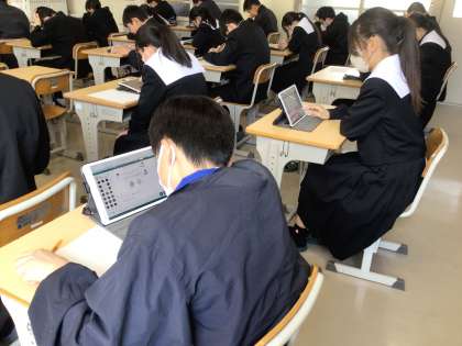 問題を解いている生徒の中には、紙にメモや計算をしてから入力していました。