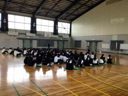 6月にある修学旅行に向けて、学年集会を行なっています。