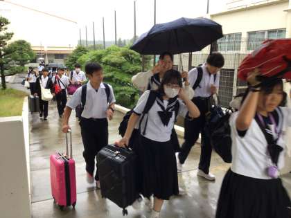 出発式を終え、バスに乗って東京に向けて出発しました。