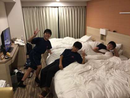部屋では、入浴をし、明日の準備をして、就寝準備をしています。