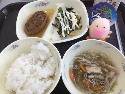 今日の給食の献立は「七夕献立」です。昔から季節の節目には、家族の健康や豊作を願い、季節の行事にちなんだ行事食が食べられてきました。今日は七夕を紹介します。夜空に浮かぶ天の川や、機織りの糸に見立てた「そうめん」を食べる風習があります。のどごしよく食べやすいそうめんは、暑さで食欲がわきにくいこの時期に、ぴったりの行事食です。