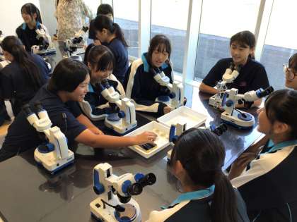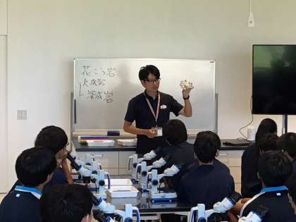 猿投山を地質の視点で学び、顕微鏡で花崗岩の鉱物を観察。