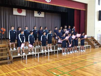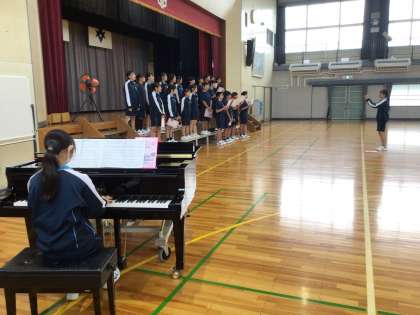 体育館で合唱練習をしていました。今年からクラスごとに合唱を発表することになりました。生徒たちは、曲を決めるところからクラスで話し合いをしながら進めてきました。練習についても生徒がアイディアを出し合いながら進めていました。