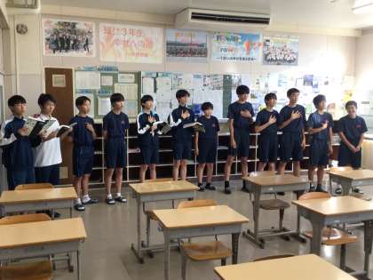猿投中学校では、久しぶりにクラスの合唱に取り組んでいます。そのため、3年生は、下級生の良き模範となるように、3年生としてのプライドをもって、練習に取り組んでいます。大いに期待しています。