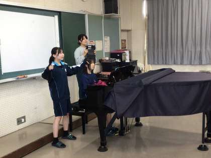 音楽室で1年生が練習していました。あと1週間で発表となります。頑張って下さい。