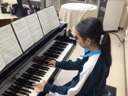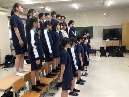 音楽室で2年生が合唱練習をしていました。1年生とは違い、声質に重みや透明感がありました。合唱をより良いものとするために、音程や強弱、抑揚にも気をつけながら練習していました。