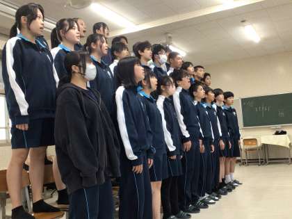 3年生の合唱練習の様子です。1年生の前で歌っていました。3年生としてのプライドがあります。下級生に聞いてもらうというのは、プレッシャーもあると思いますが、それを克服して歌おうとする姿が輝いていました。
