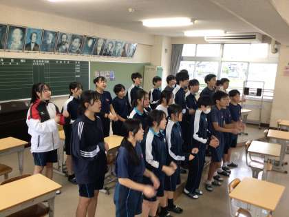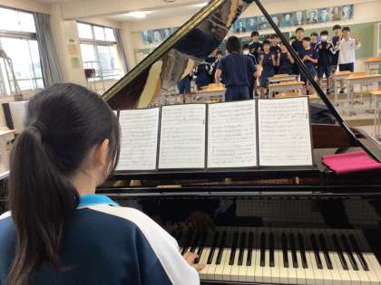 音楽室での練習の様子です。指揮者に合わせて、一つになるように工夫して練習していました。3年生は、どのクラスも上級生らしい歌声にしようと、前向きに取り組んでいます。今週金曜日の発表会、期待しています。