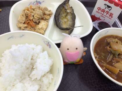 今日の給食の献立は、「豊田ブランドの日」献立です。鮎の一夜干し揚げ、おいしくいただきました。