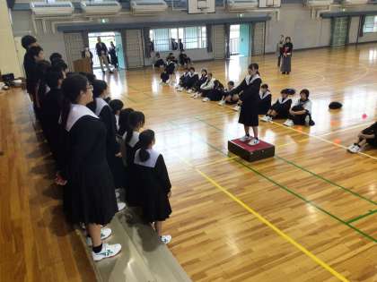 午後から文化祭のリハーサルを体育館で行いました。1年生の合唱のリハーサルの様子です。歌い終わったクラスは、他クラスの合唱を聴いていました。
