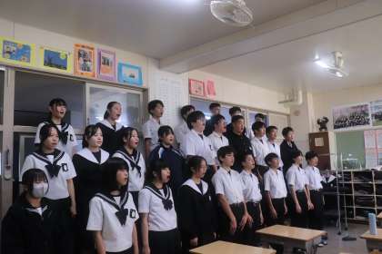 明日は文化祭です。3年生が体育館会場作りと周辺の環境整備をしました。最後には、完成した会場で最後の合唱練習をしました。明日はいよいよ発表会です。猿投中学校の最上級生として、それぞれのクラスが輝くことを期待しています。