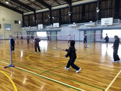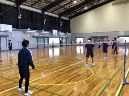 体育館でバドミントンに取り組んでいました。今年から体育館にもエアコンが整備され、快適な環境で授業を行うことができるようになりました。