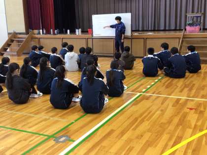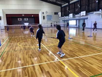 2年生の保健体育科の授業の様子です。バドミントンに取り組んでいました。今朝は少し冷え込んでいたので、体育館のエアコンを使用して、快適な空間で学習していました。