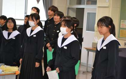 総合的な学習の時間の様子です。2年生が職場体験学習のまとめを作成し、来年体験する予定の1年生に向けて発表していました。学習用タブレットに動画などを取り入れてまとめている生徒もいました。1年生の生徒は、職場体験学習に向けて、意欲が高まっているようでした。