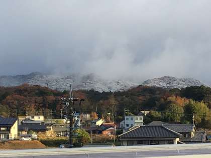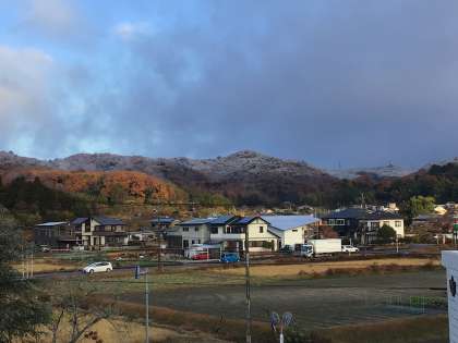 昨晩は、この地域も初雪が降った模様です。猿投山もうっすらと雪化粧していました。
