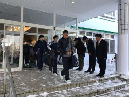 お世話になったヴァカンス村の館長さんからあいさつをしていただき、3日間の感謝を伝えました。