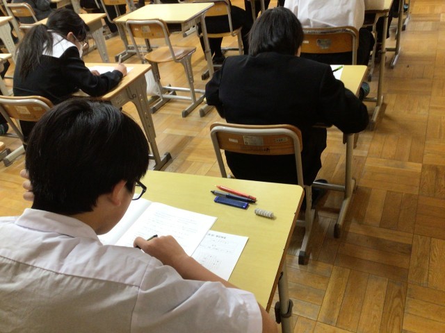 1年生は、初めての学習診断テストに取り組んでいます。写真は、英語科のテストの様子です。1年3組は、現在学級閉鎖のため、来週月曜日に実施する予定です。