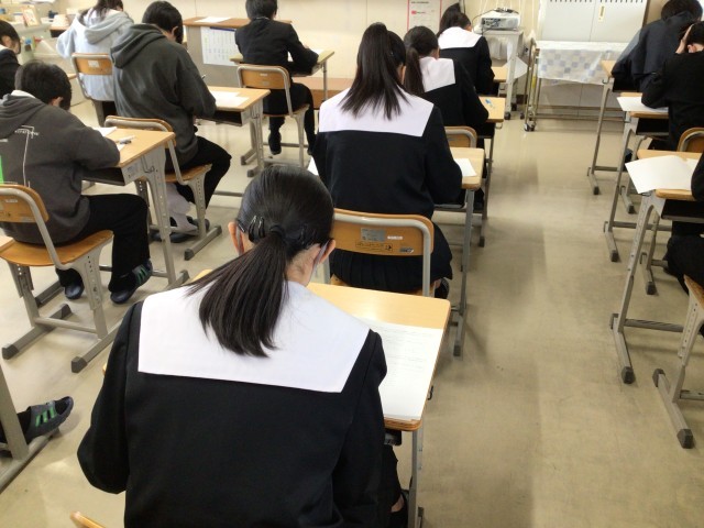 4時間目の理科のテストの様子です。5教科のテストを一日で行うため、生徒のみなさんは大変だと思います。来年は、進路実現のために、こういう日程にも慣れておく必要があります。今日のテストもあと少しです。がんばってください。