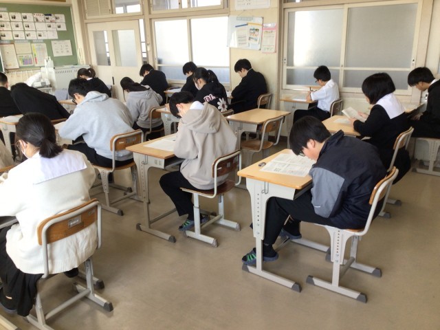 第4回定期テストの2日目です。1,2年生は、9教科のテストに取り組みます。最後のテストまで、集中してがんばってください。
