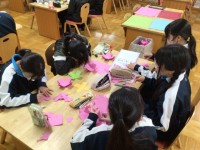 玄関に生徒の作品が飾られています。今回は、ハピスマ学級の生徒が作った「おひなさま」です。本校にお越しの際は、ぜひご覧ください。