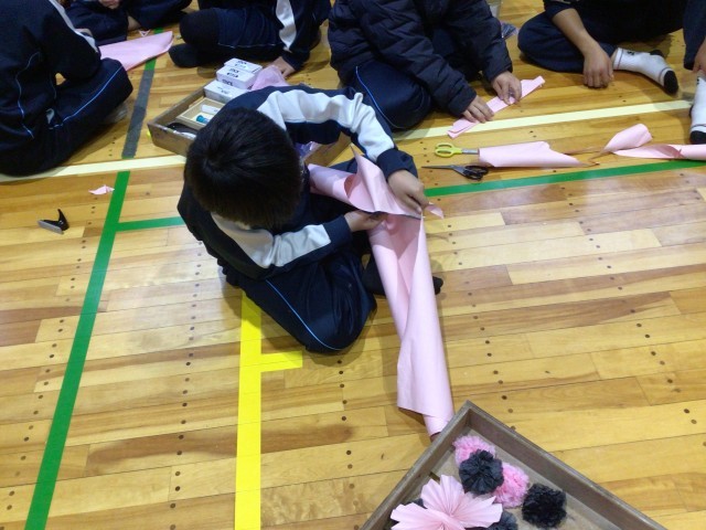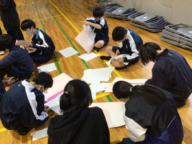 卒業生を送る会に向けて準備を進めています。体育館では、装飾の準備やエピソード劇の練習をしていました。劇の練習では、無駄な合間がなくなるように、何度も動きの確認をしていました。3年生が心から楽しむことができるように、1,2年生はとても前向きに活動していました。