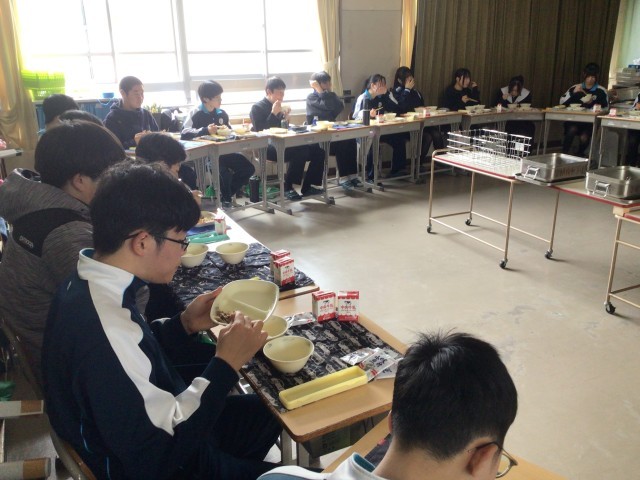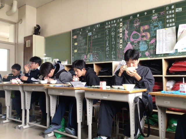 3年生の給食の様子です。校長先生を教室へ招待して一緒に食べていました。用意していたクイズを一緒に解くなど、楽しく会食をしていました。3年生のみなさん、いよいよ卒業ですね。最後まで、最上級生としてのプライドを見せてくださいね。期待しています。
