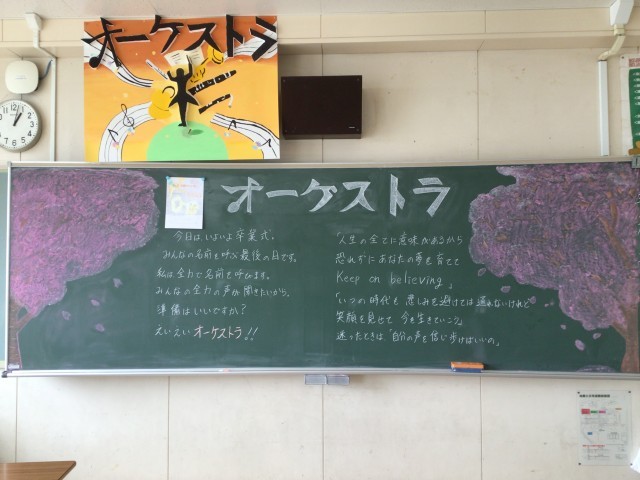 3年生のみなさんが仲間と過ごした教室です。みなさんが卒業した後、ひっそりと返っていました。教室がとてもさみしく感じられました。