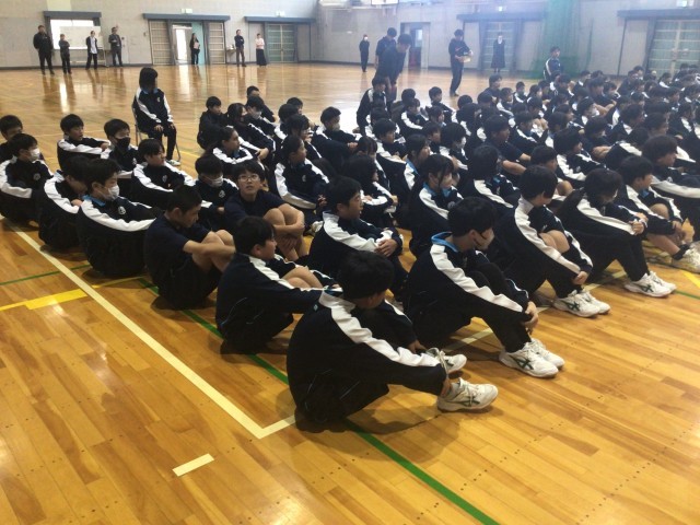 新2年生と新3年生がそろって入学式準備の内容を確認していました。今日は、本校に新たに赴任された先生方も一緒に活動していました。