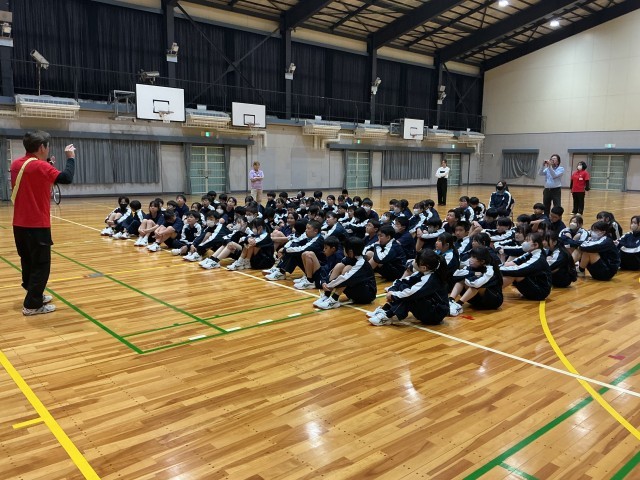 自転車安全教室を体育館で行いました。本校では、毎年1年生が参加しています。自転車通学者が多く、交通安全の意識を高めるために、実施しています。