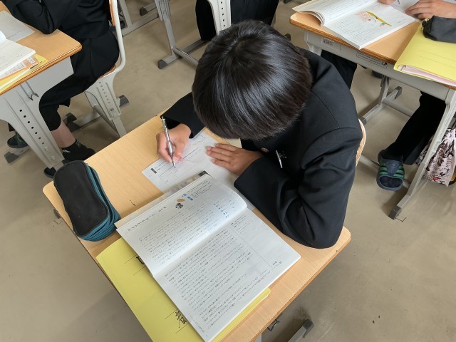 2年生の国語科の授業の様子です。椎名誠さんの『アイスプラネット』を読んで、学習に取り組んでいました。今年度は、生徒が本に親しむことができるように取り組んでいく予定です。